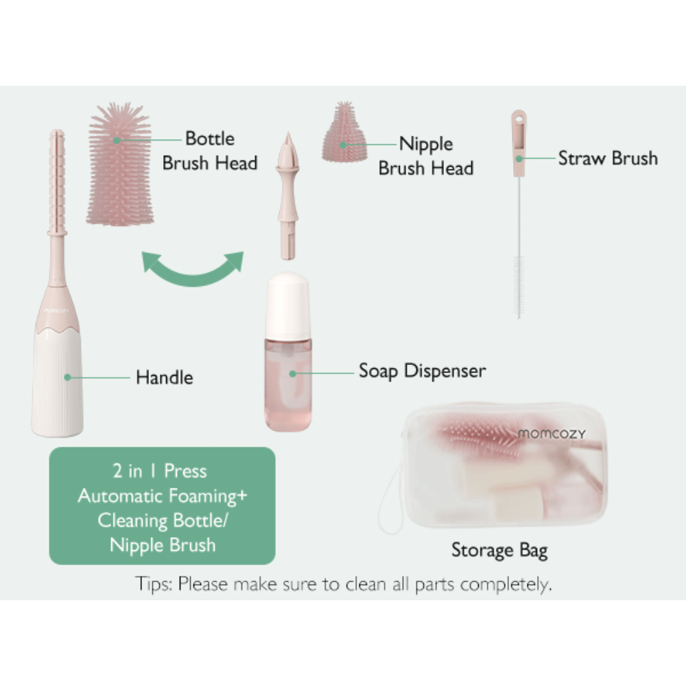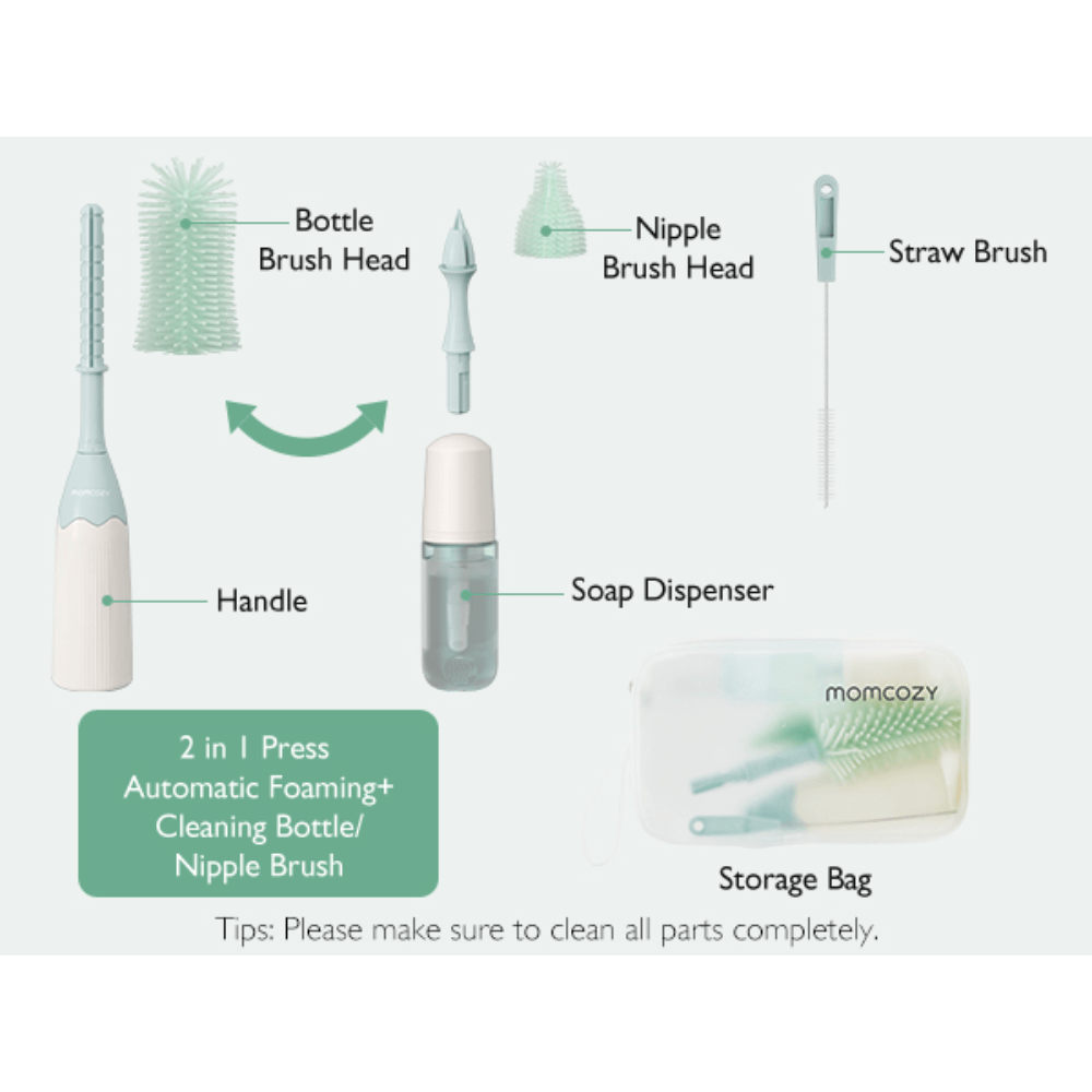 - Versatile Cleaning Tools: Includes bottle brush head, nipple angled head, and silicone brushes for pacifiers