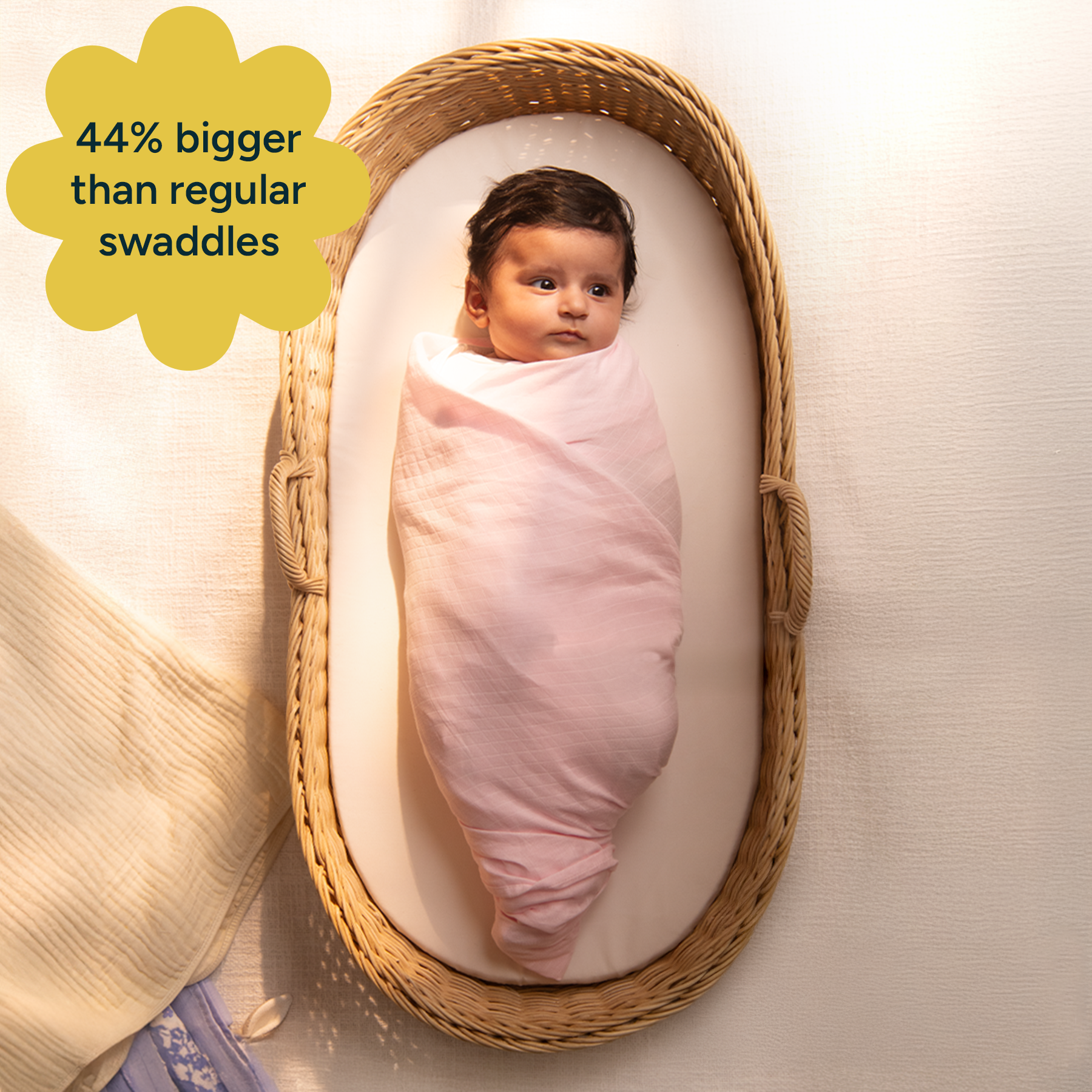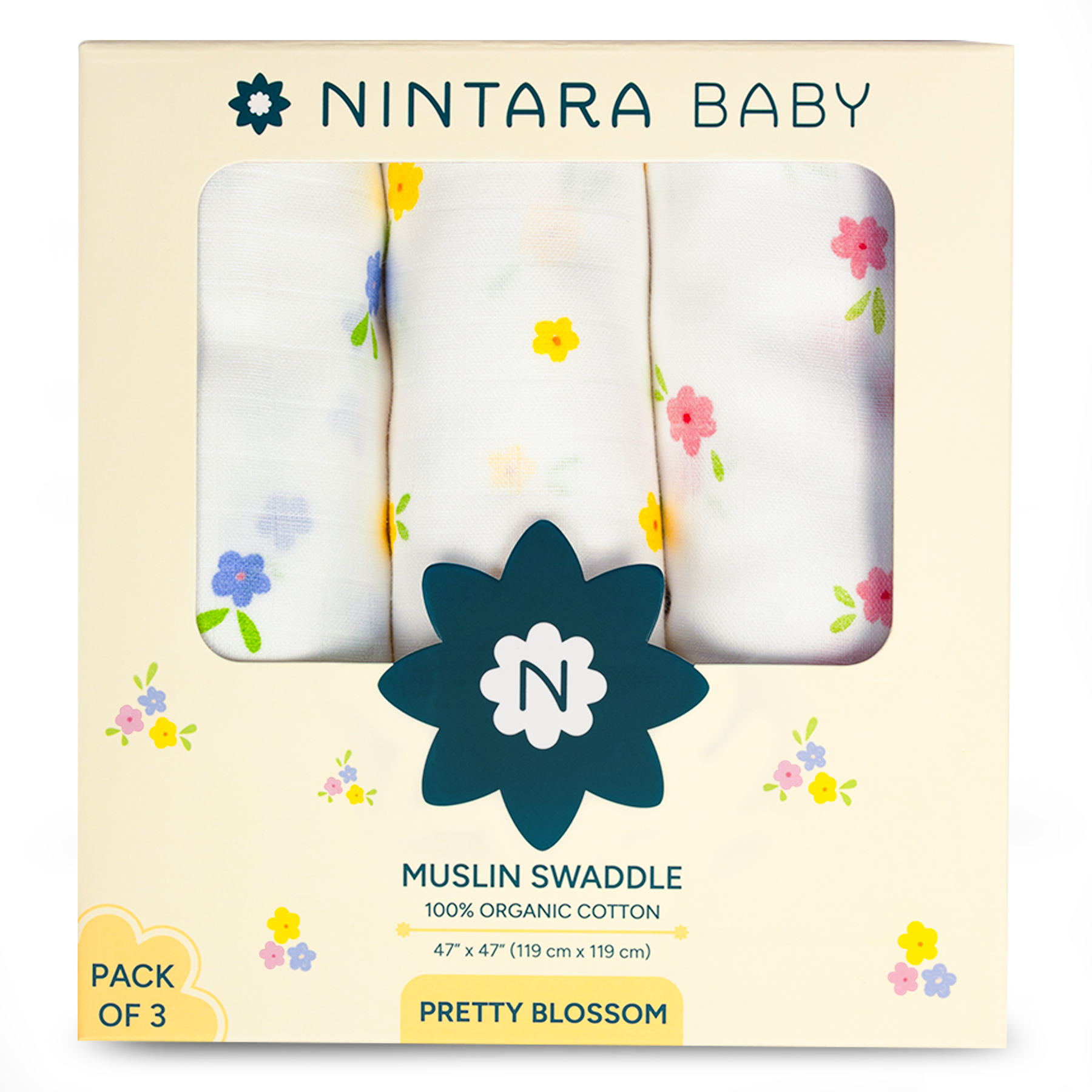 Nintara Baby's extra-soft swaddles were designed for maximum comfort and safety. They are made from 100% organic cotton and are large enough for a generous swaddle, a nursing blanket, or a cozy landing for tummy time.