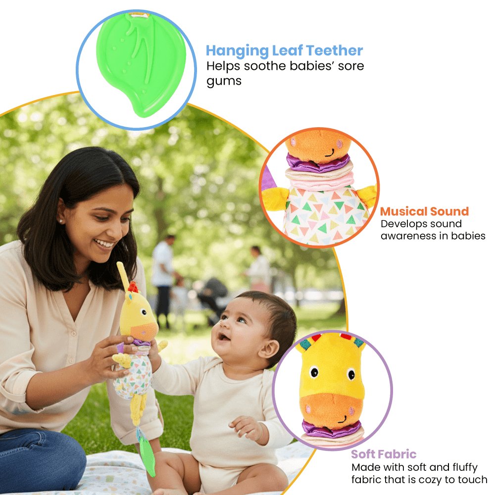 - Soothing Teether: Includes a leaf teether for babies to chew on, helping soothe sore gums