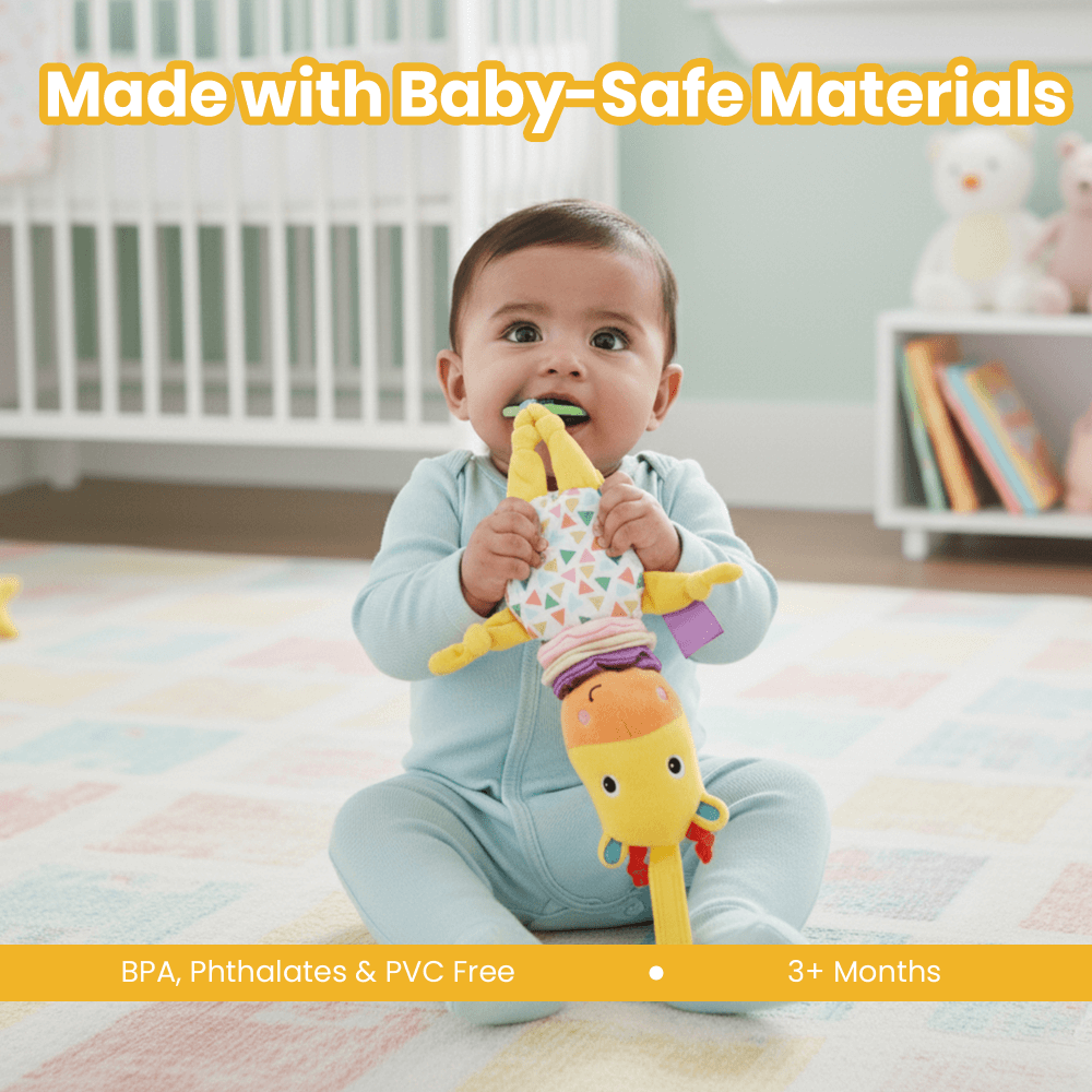 - Easy Attachment: Comes with a hanging ring to attach easily to strollers, cribs, or toys