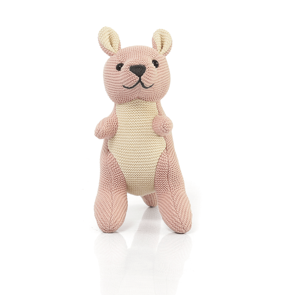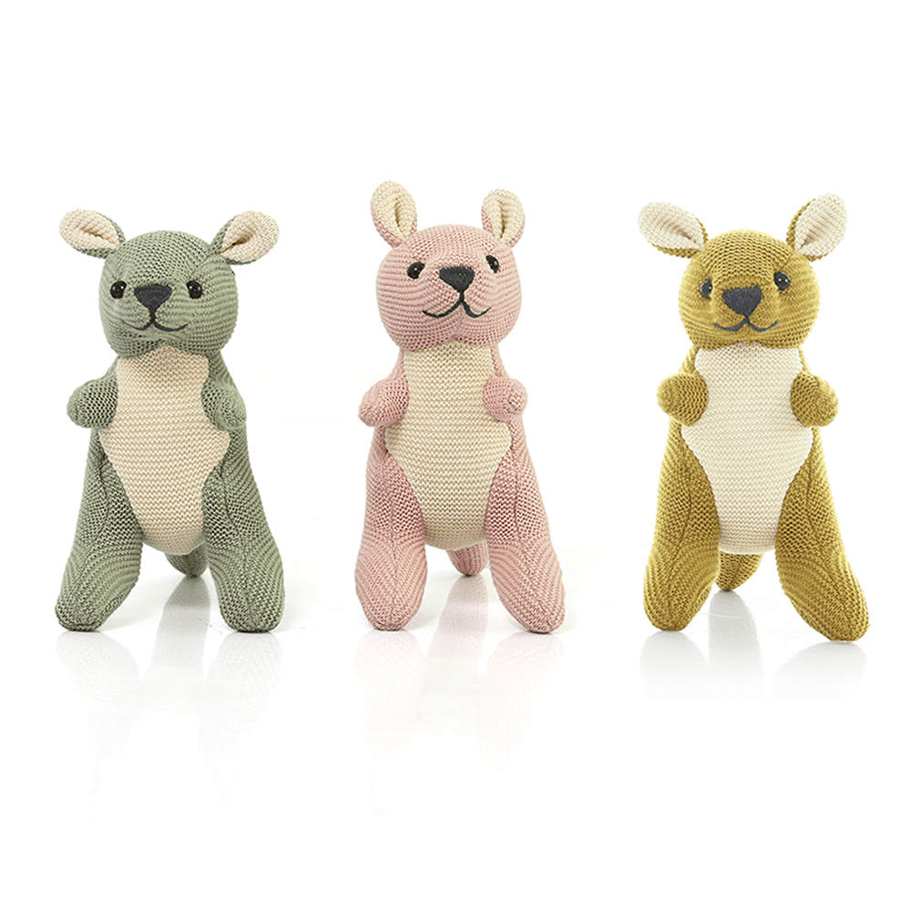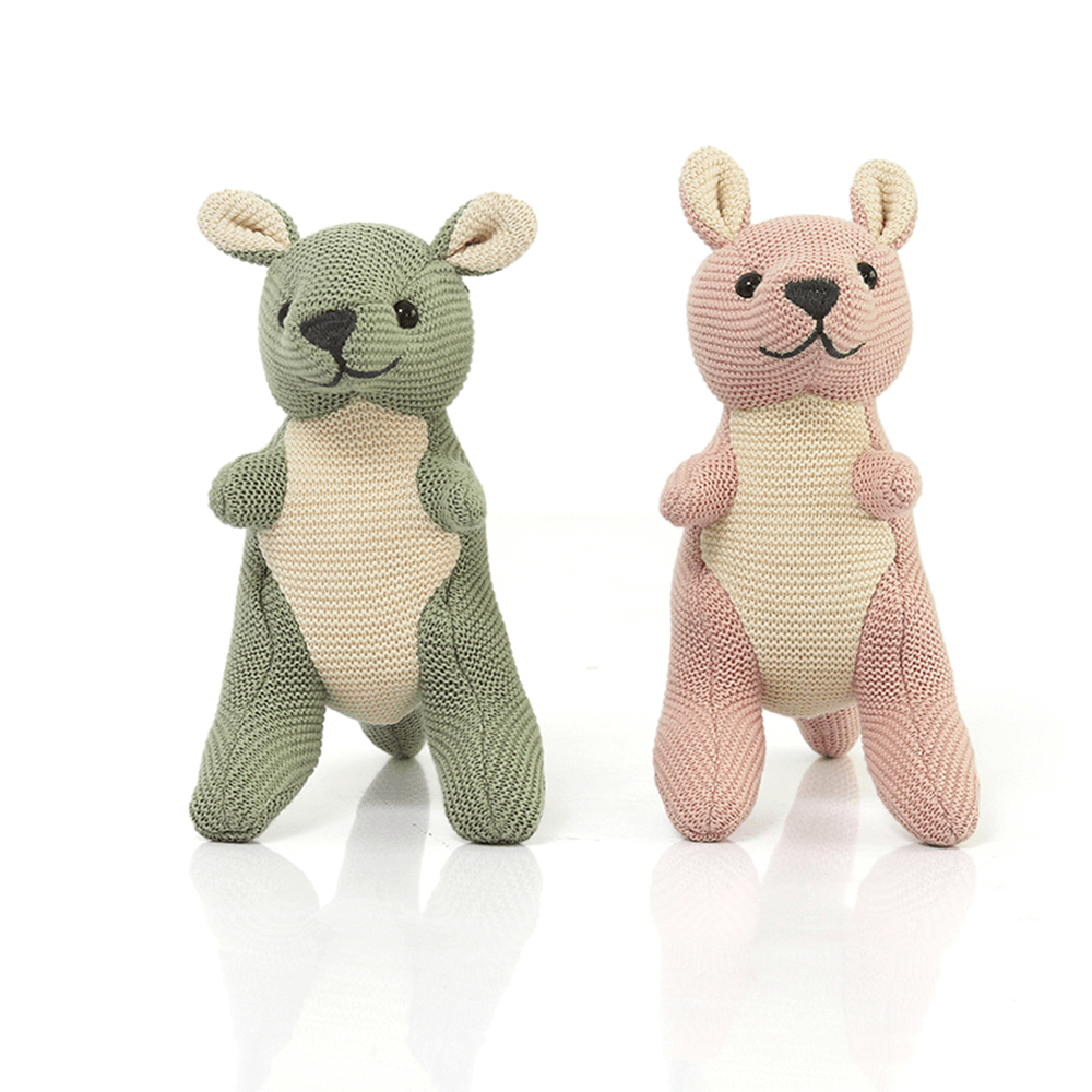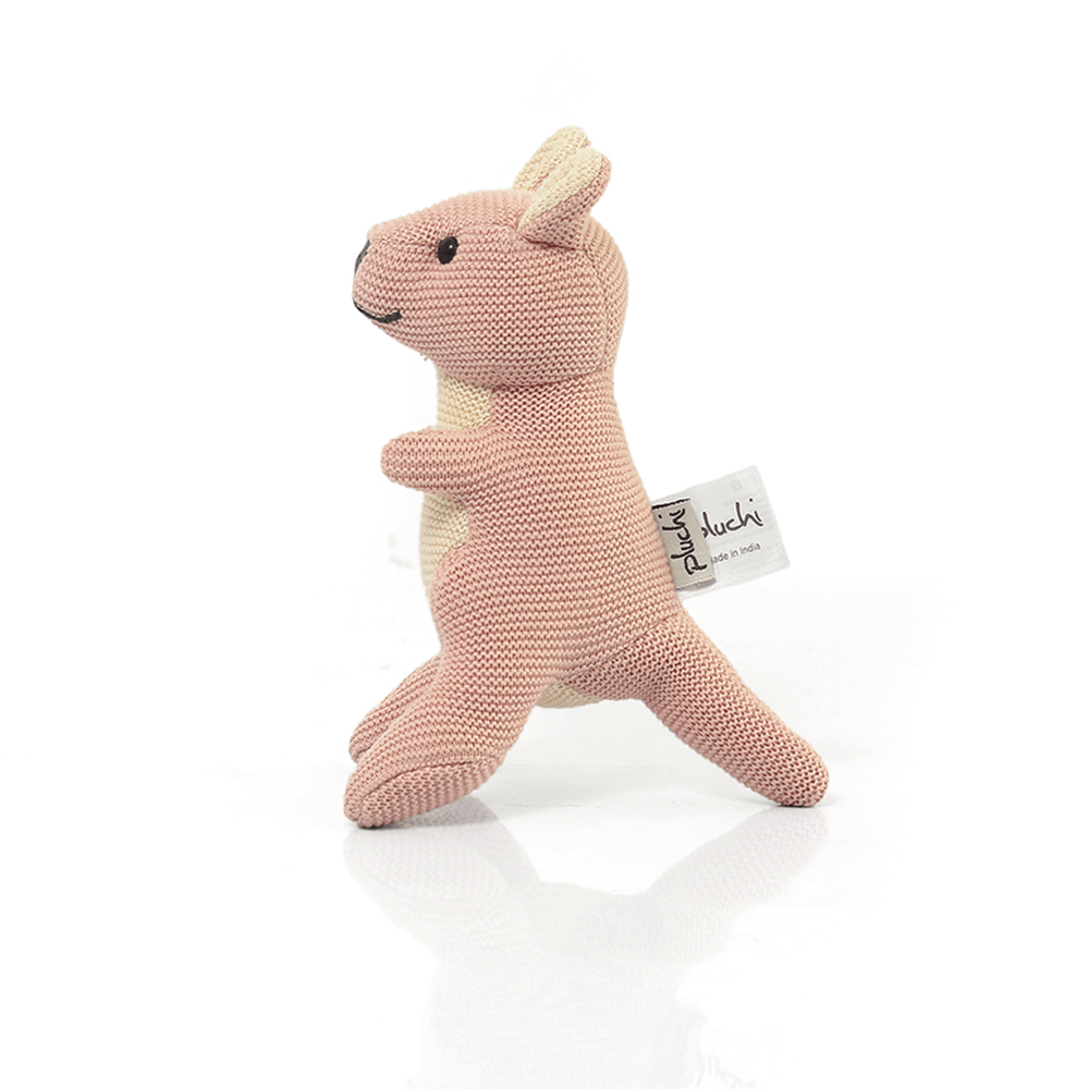 Super soft Doodle Kangaroo Rattle toy made from knitted cotton is perfect for snuggling in cots and during play time. A beautiful gift for that dear little one in your life, carefully knitted by us keeping in mind your kids' all day companion! This toy has super soft hand feel and is free from Free from 100 Harmful Substances