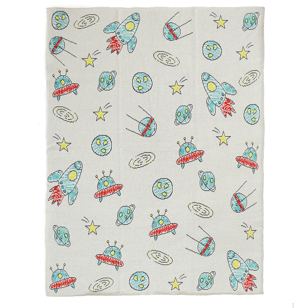 The Countryside Cars, Dinos World, Navigating My Spaceship, and Wild Safari knitted kids blankets are crafted from 100% cotton, making them perfect for year-round use. Soft and breathable, they keep your little one cosy and snug. Each blanket is big enough for a warm cuddle yet small enough to carry anywhere with ease. Designed for comfort and practicality, they are also easy to care for, making them an ideal everyday essential for kids.