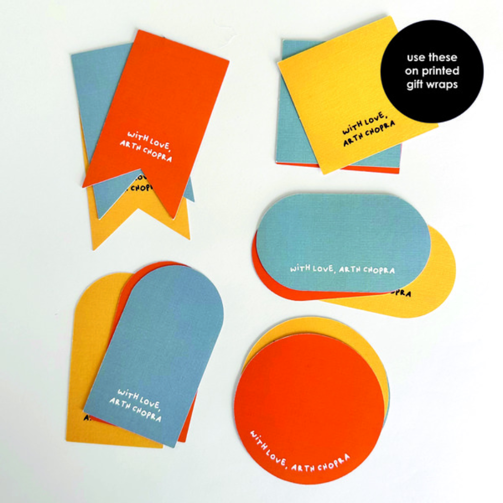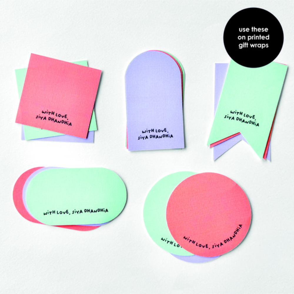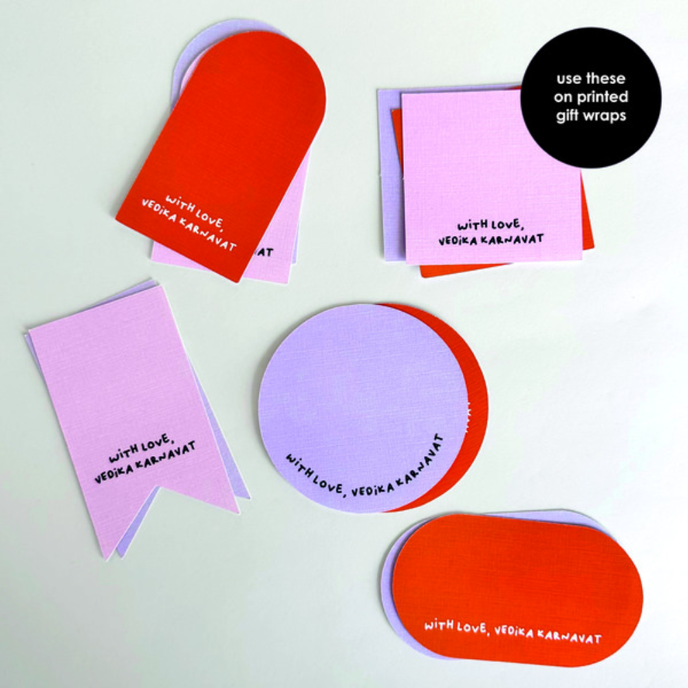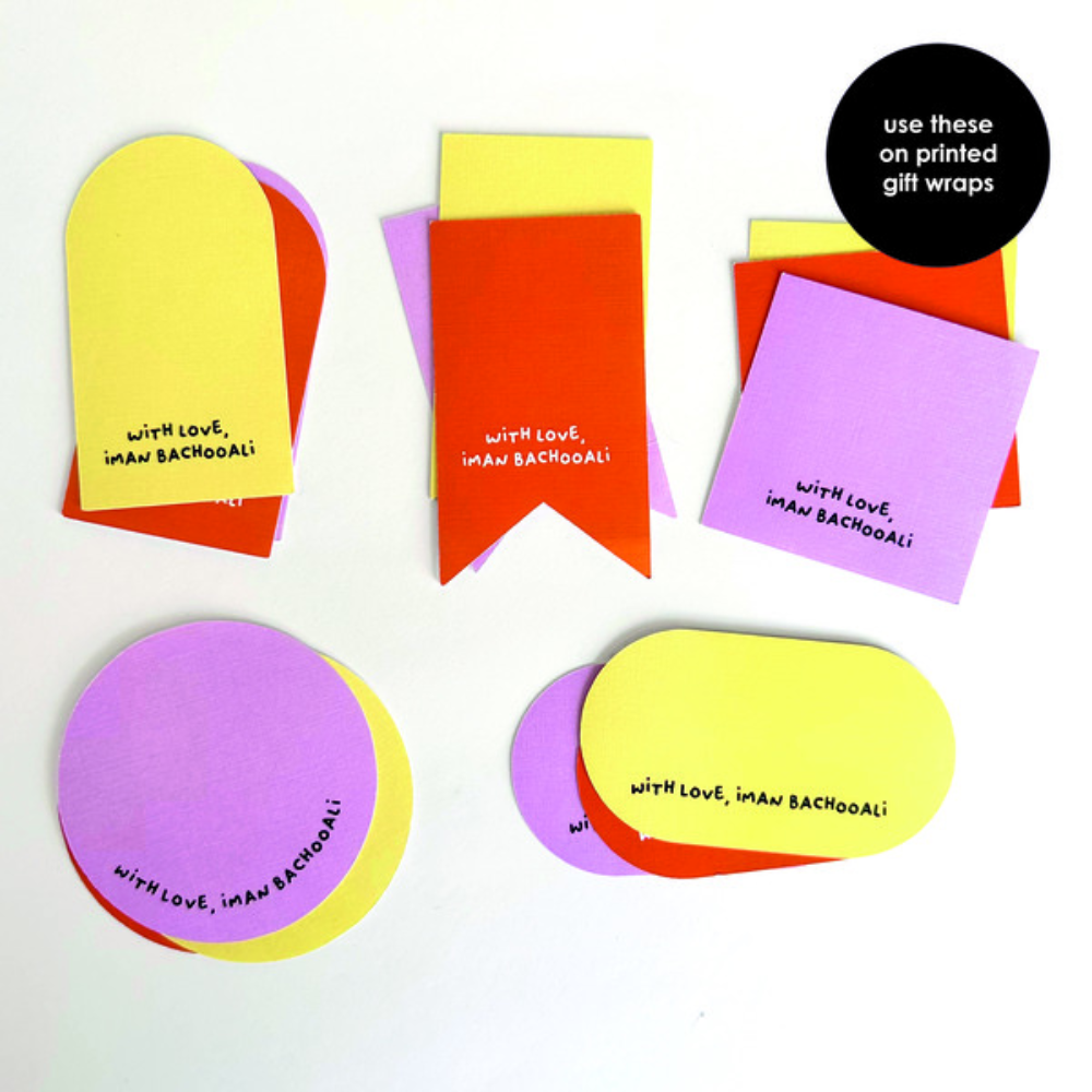 These cute stick-on tags are the perfect solution for your gift-wrapping needs. Printed and solid colored, these tags can be used on both solid wrapping papers or printed wrapping papers. You can also choose one on which you want to write a note, or not, making them easy and versatile!