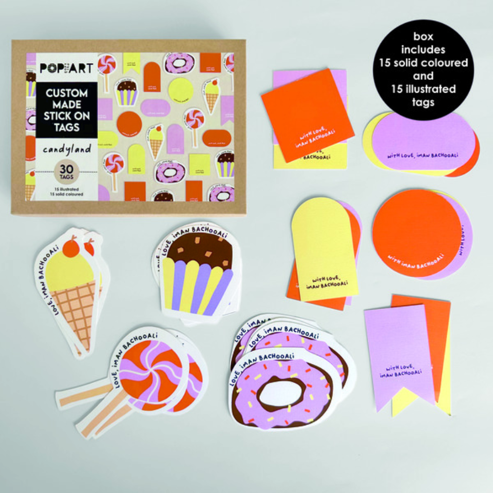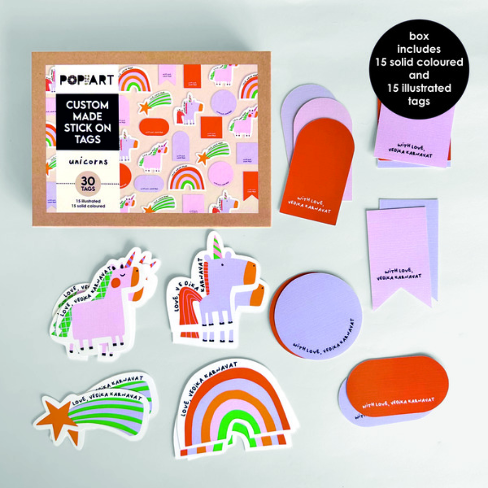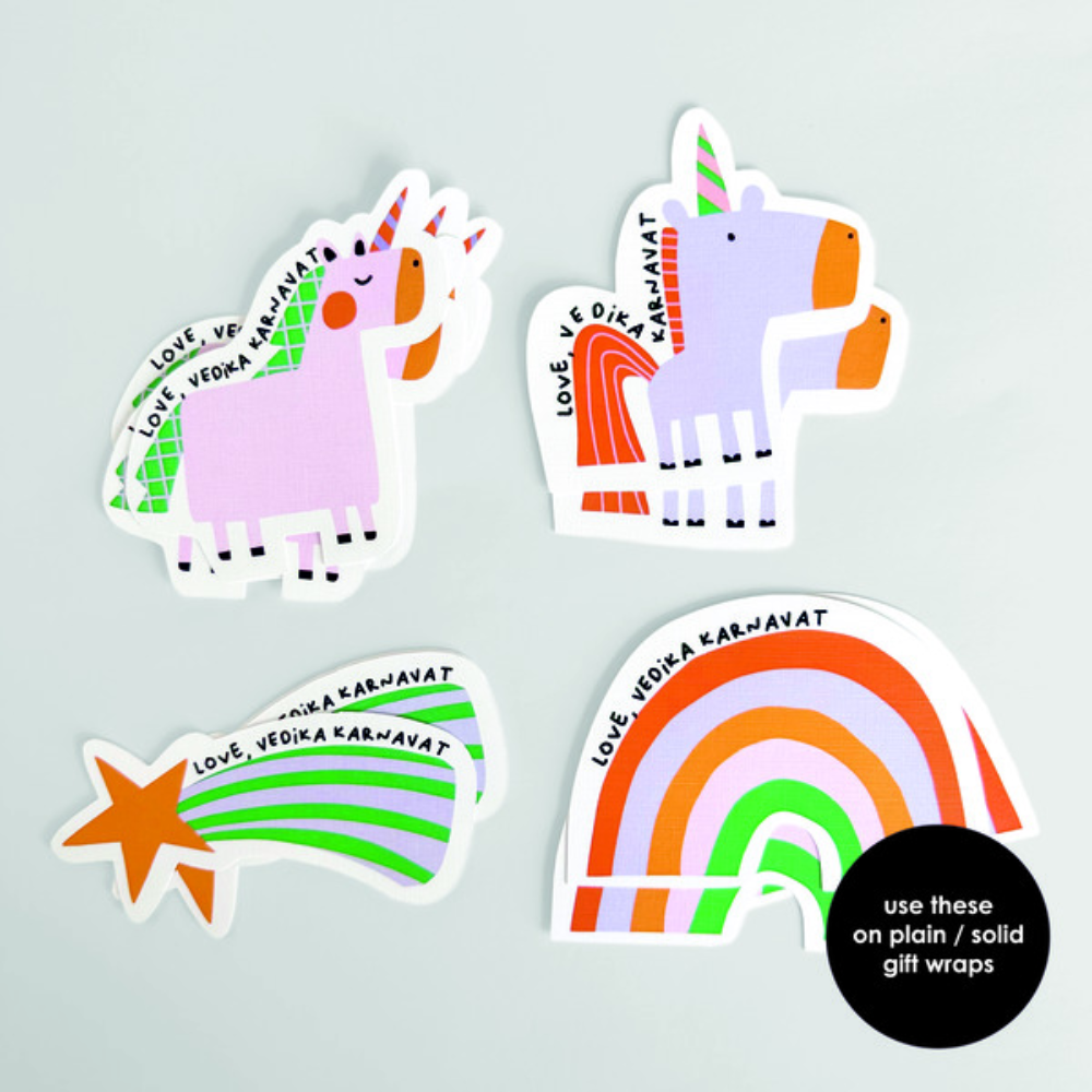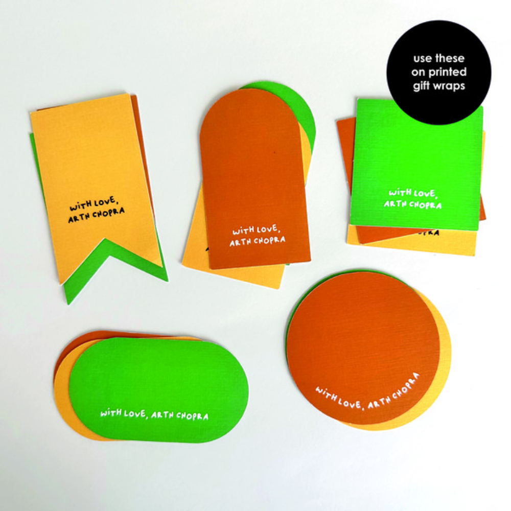 These cute stick-on tags are the perfect solution for your gift-wrapping needs. Printed and solid colored, these tags can be used on both solid wrapping papers or printed wrapping papers. You can also choose one on which you want to write a note, or not, making them easy and versatile!