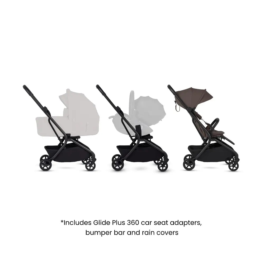 In The Box: Nia Chassis, Seat unit, Bumper bar, Rain cover, Glide Plus 360 adaptors.