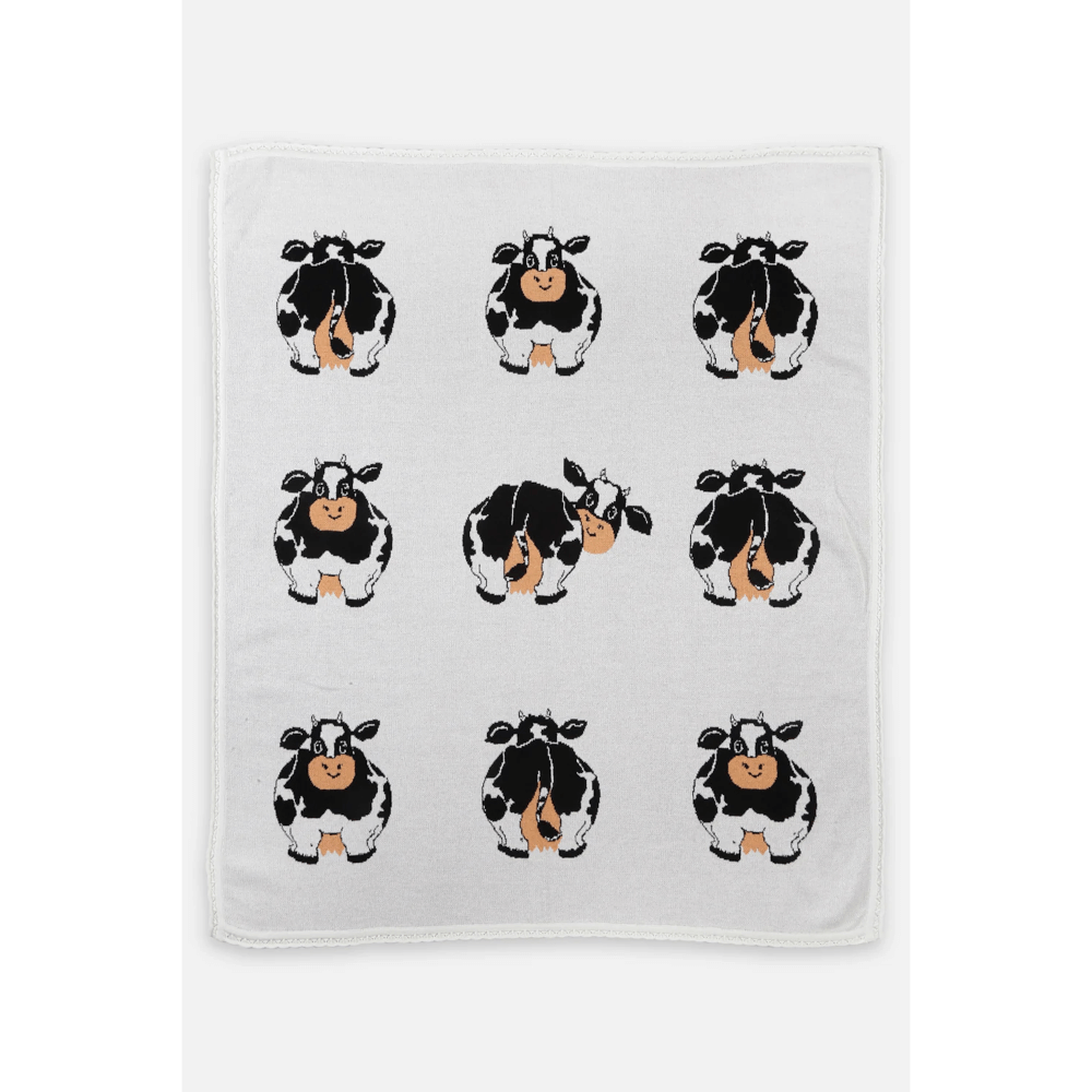 - Grey Cow Knitted Blanket