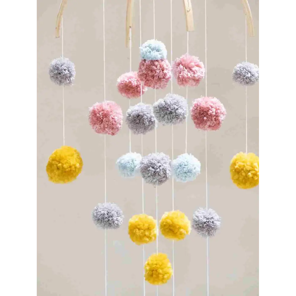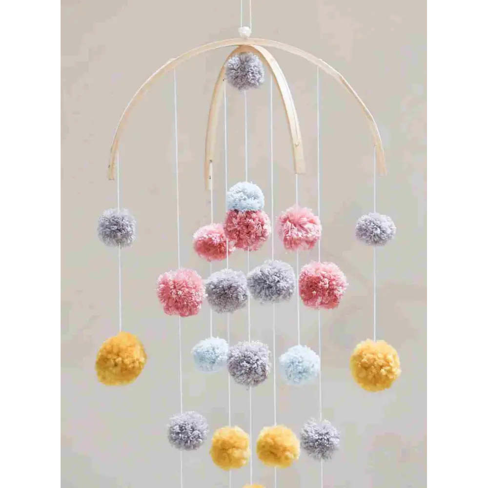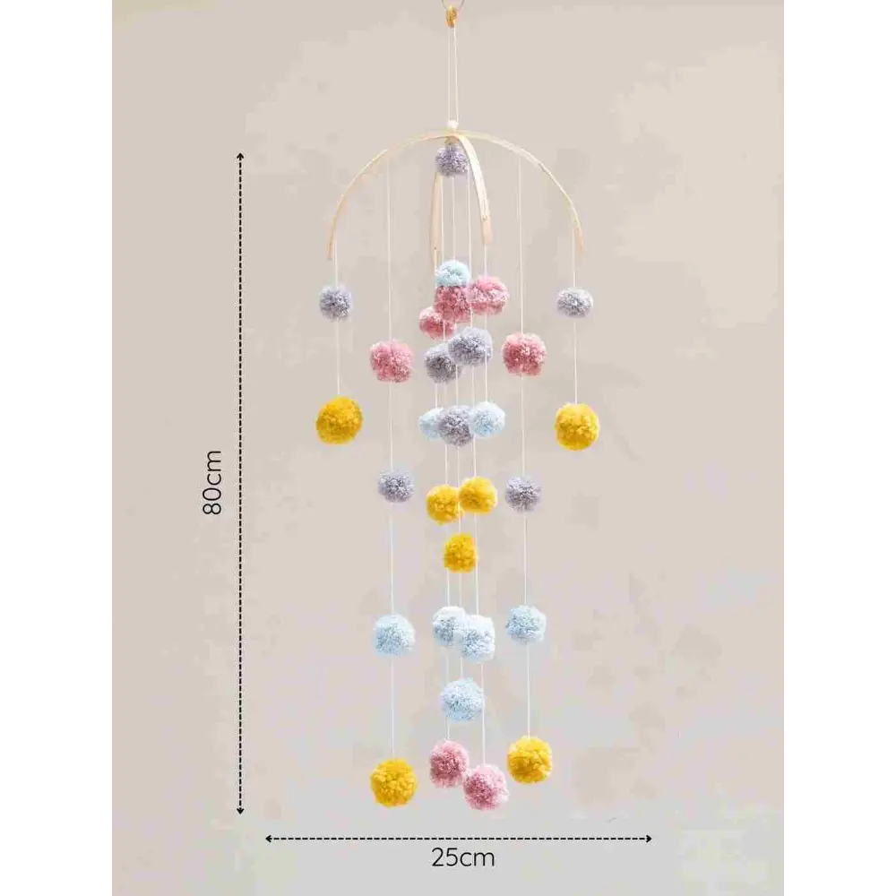 Create a calming, whimsical environment for your little one with the Dreamy Cots Cot Mobile – a handcrafted hanging mobile made of soft pom-poms in pastel tones of blush pink, sky blue, sunshine yellow, and lavender. Perfect for Newborns and infants, this mobile encourages visual stimulation and helps soothe your baby to sleep. Crafted with love using non-toxic materials and gentle textures, it gently sways to the rhythm of air, capturing your baby’s attention with its floating, cloud-like charm. Whether hung over a crib, changing table, or reading nook, this mobile becomes an instant statement of style and warmth in any nursery.