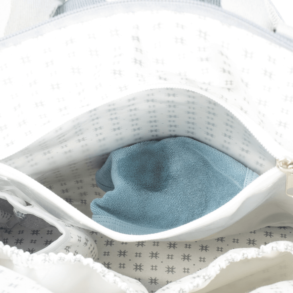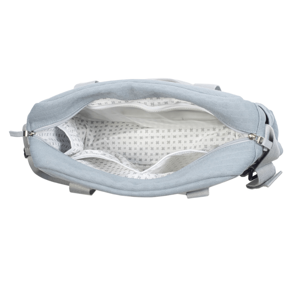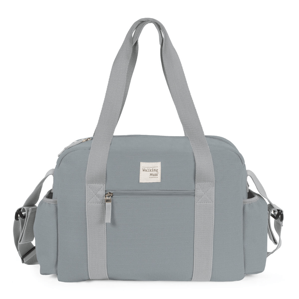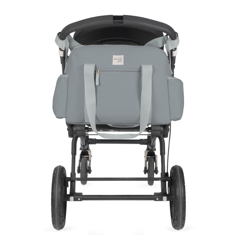 Changing bag for stroller Eco Mum Cloud is made with rPET (post-consumer recycled polyester). The rPET we use is made from recycled PET plastic from water bottles. The use of this material reduces water consumption, energy consumption and CO2 emissions. Includes baby changing mat. Lightweight, strong and with a great capacity diaper bag to carry everything you need for your baby. It has helpful pockets in order to have on hand everything. It has one inside plastified pocket for carry wet clothes, one lateral thermal pocket for bibs or bottles and 2 pockets more to have in order all you need for your baby. It also have 2 lateral exterior pockets for feeding bottles and 1 front pocket closed with zipper. The bag has a long adjustable handle to hang on the shoulder which includes 2 adjustable short handles for easy fixing in any model of stroller and short handles to hold it by hand. Made of a durable and easy to clean material. Walking Mum protects your baby using the best fabrics. All materials are free from azo dyes and noxious substances harmful to your baby’s health.