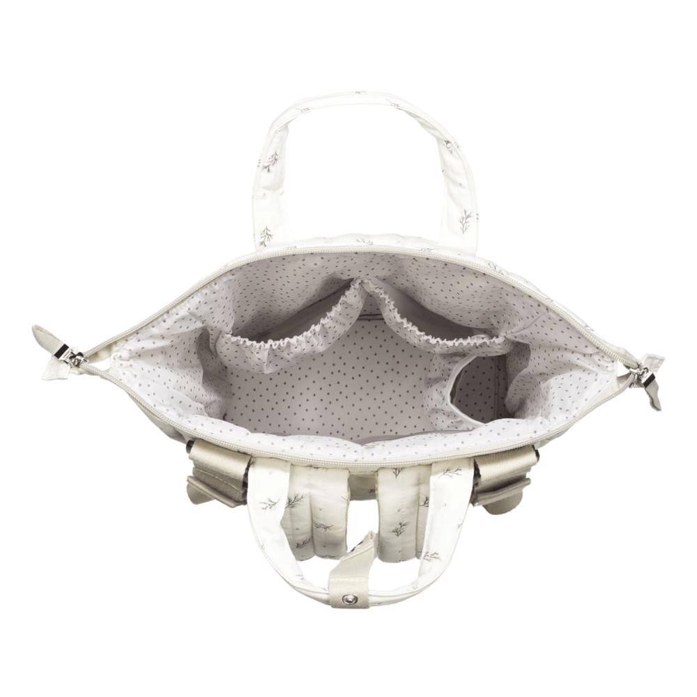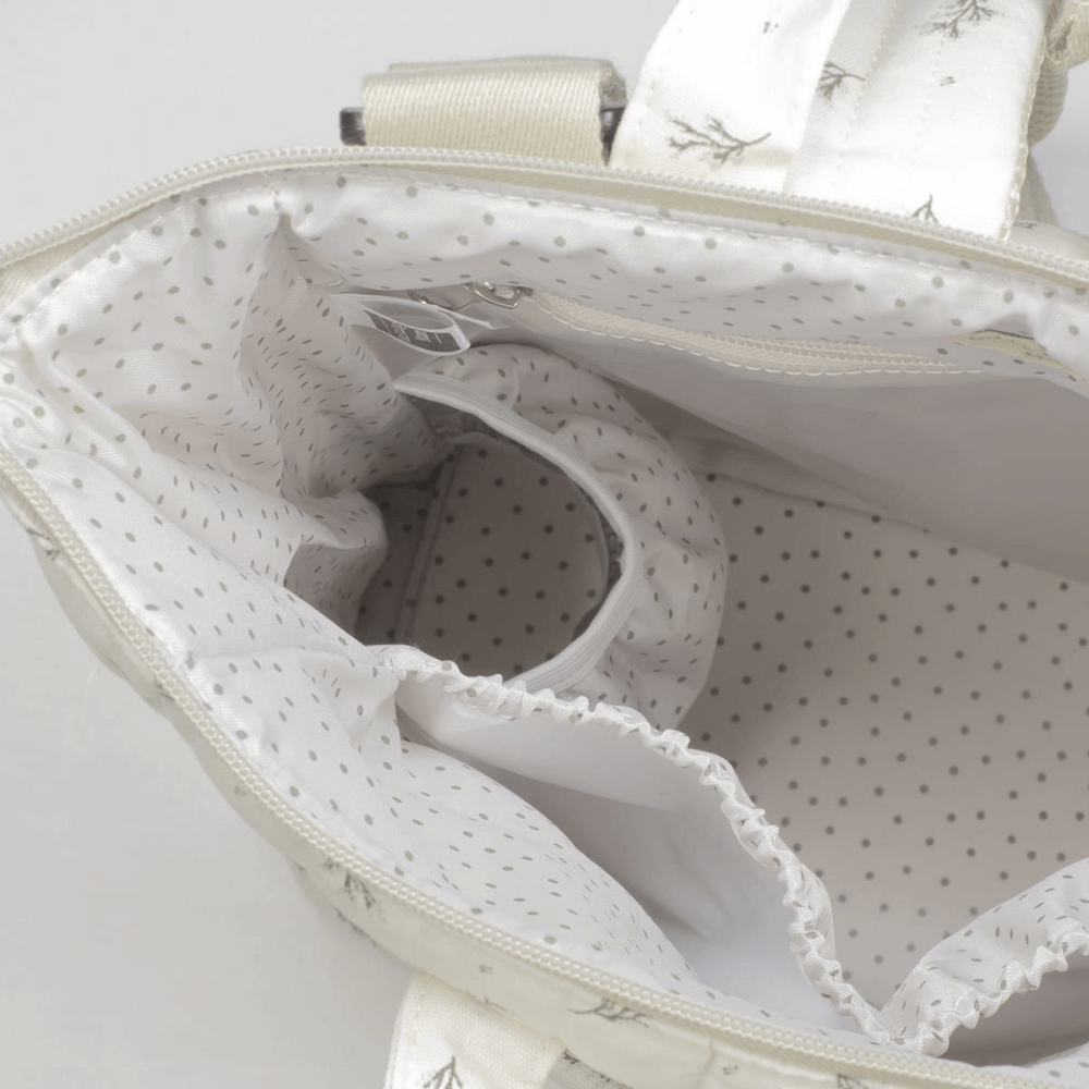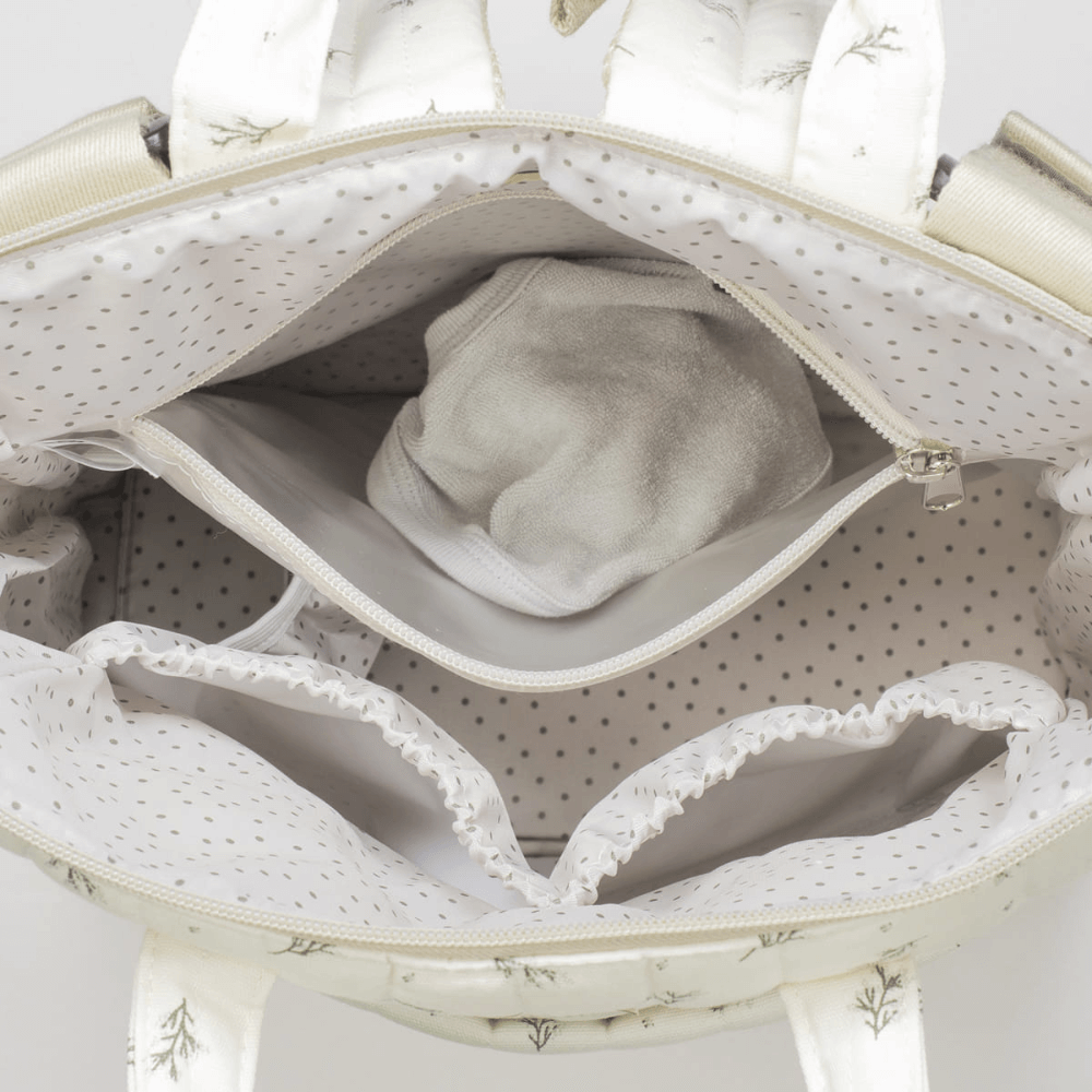 A diaper bag and backpack in one, ideal for carrying both your and your baby's essentials, with plenty of style, on all your outings. The Mimosa Green backpack with floral print is made of 100% cotton with a waterproof treatment. This stroller backpack is a multifunctional model, very lightweight, durable, and with ample capacity to carry everything needed for your baby's outing. Its design features multiple exterior and interior pockets to keep everything organized and within reach. It has pockets for storing bottles securely, compartments for utensils, wet wipes, and even a bottle holder. It includes a matching changing pad and a plastic-lined pocket for storing wet clothes and isolating moisture from the rest of the backpack. The bag includes 2 adjustable short handles that make it easy to attach to any stroller model, hand straps, and padded shoulder straps for hanging comfortably on your back without causing discomfort due to weight. High quality and lots of style. Made of 100% cotton with a waterproof treatment, it is easy to clean by hand or machine. Walking Mum protects your baby by using the best fabrics, free of azo dyes and harmful substances to health. Our Walking Mum collection maintains all the quality of the Pasito a Pasito brand but with a distinctive urban and modern style that doesn't go unnoticed, to dress up your outings with your baby differently. The maternity bags in this line are more sporty and practical, especially designed for modern moms and dads who appreciate the latest designs and trends without sacrificing quality and functionality in the accessories that complement and make all outings with their babies more comfortable.