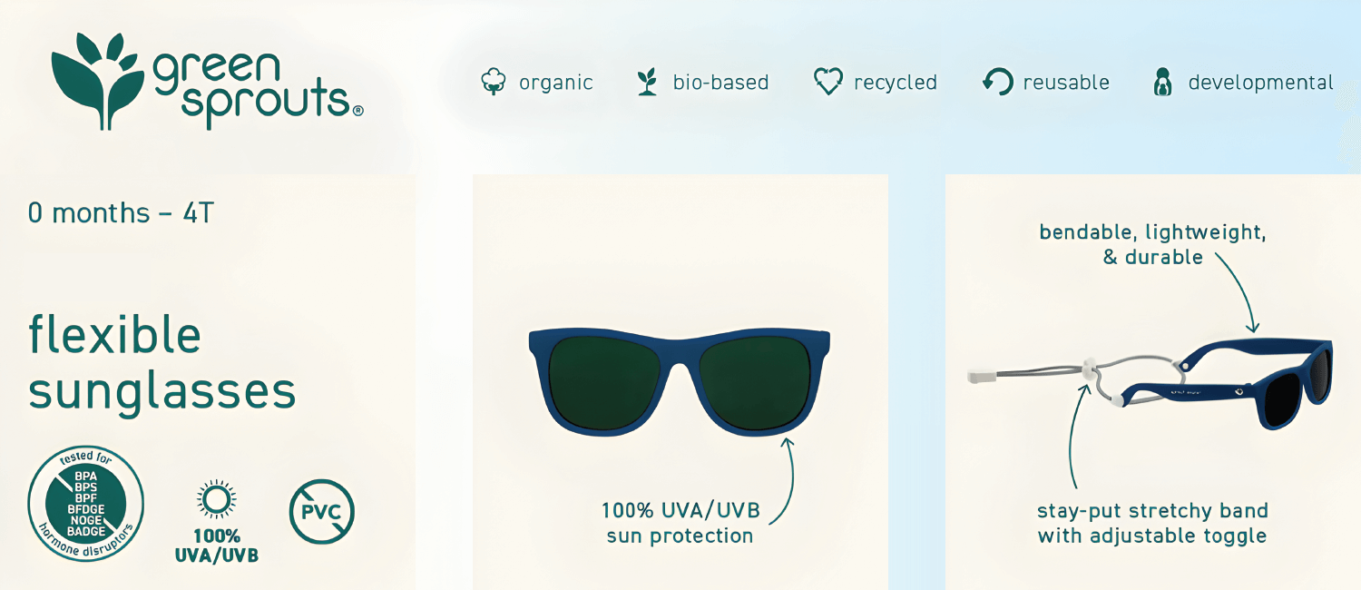 Flexible, bendable, and durable sunglasses with 100% UVA/UVB sun protection.